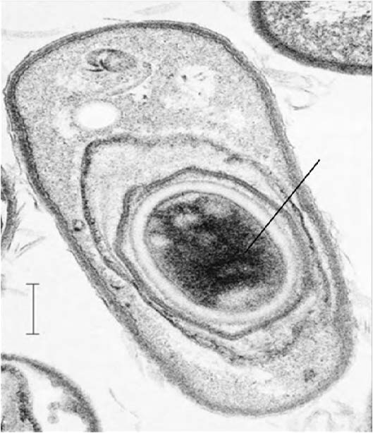 | Clostridium - domain Bacteria, Gram (+), phylum Eubacteria, have endospores that allow them to survive long periods of environmental stress, cause human disease botulism and tetanus |