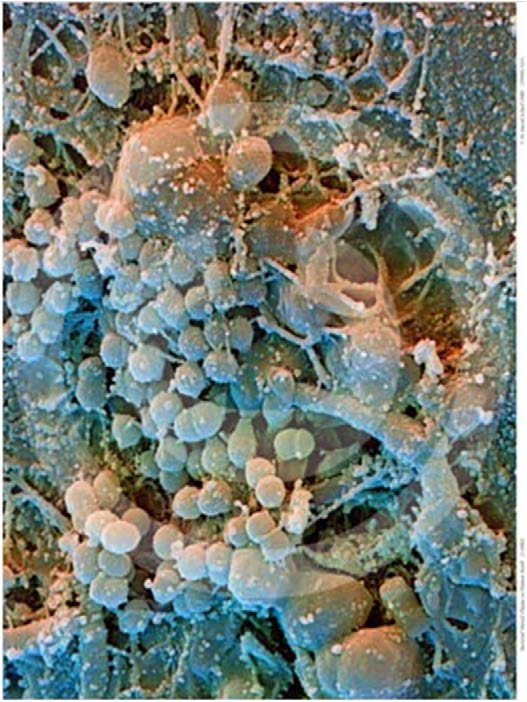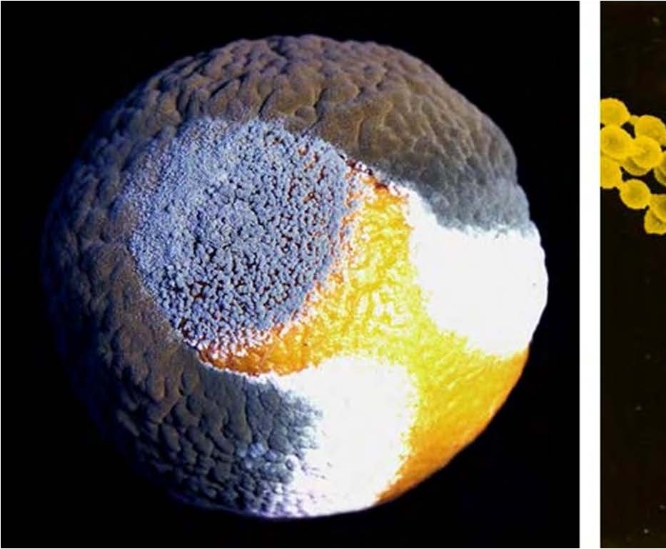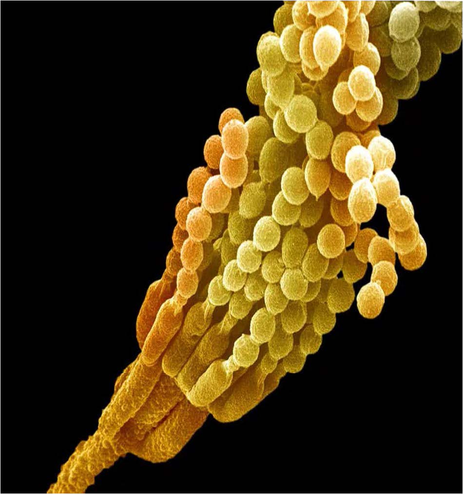 | Staphylococcus aureus (Cocci) - domain Bacteria, common skin bacteria |