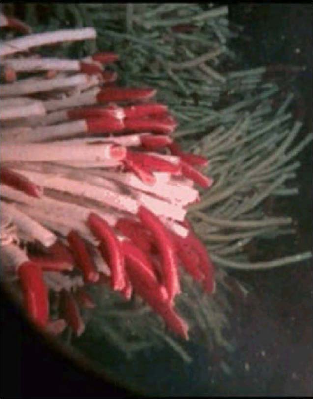 | Domain: Archaea, Phylum: Extreme Thermophile, Name: Giant tubeworm |