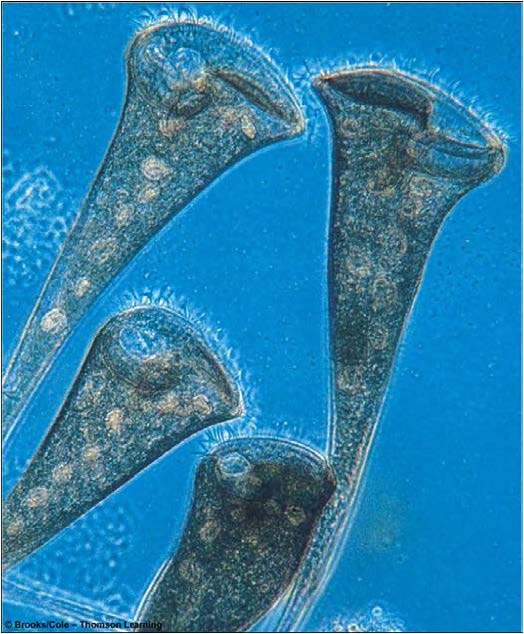 | Domain: Eukarya, Superclade: SAR, Clade: Alveolata, Alveolates, Name: Stentor, contain membrane-bound sacs called alveoli, use cilia to move and feed |