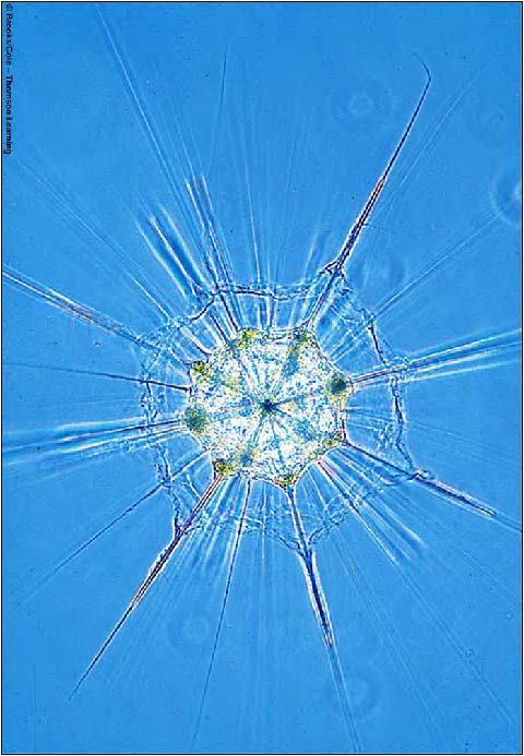 | Domain: Eukarya, Superclade: SAR, (Rhizarians), Clade: Cercozoa & Radiolarians, Name: Radiolarians, Thread-like pseudopodia, calcium carbonate shells or tests, ingest smaller cells by phagocytosis using their pseudopodia and cytoplasmic streaming |
