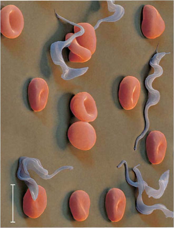 | Domain: Eukarya, Superclade: Excavata, Clade: Euglenozoa, Class: Kinetoplastea, Name: Trypanosoma bruceii, Flagella have a unique crystalline rod of unknown function, single mitrochondrion containing a large mass of DNA called a kinetoplast, causes Chagas disease and African sleeping sickness |