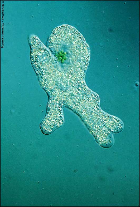 | Domain: Eukarya, Superclade: Unikonta, Clade: Amoebozoa, Name: Amoeba proteus, have lobe-shaped pseudopodia or false-feet, engulf prey via pseudopodia |