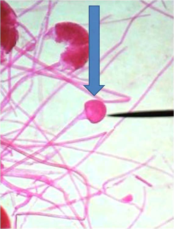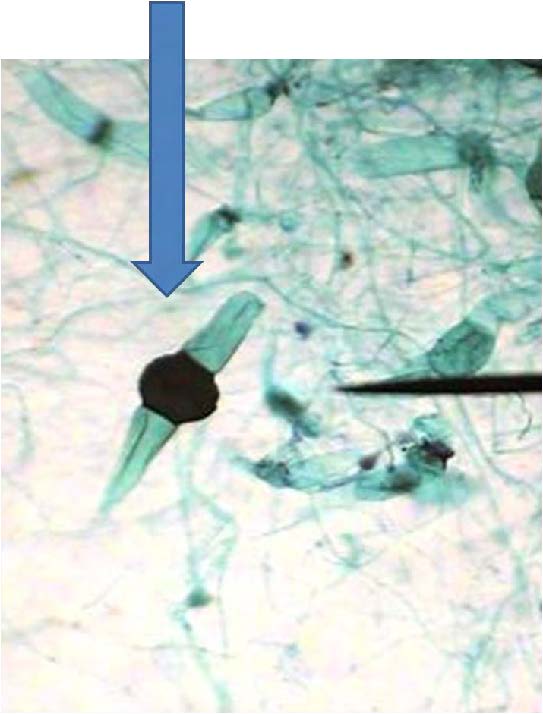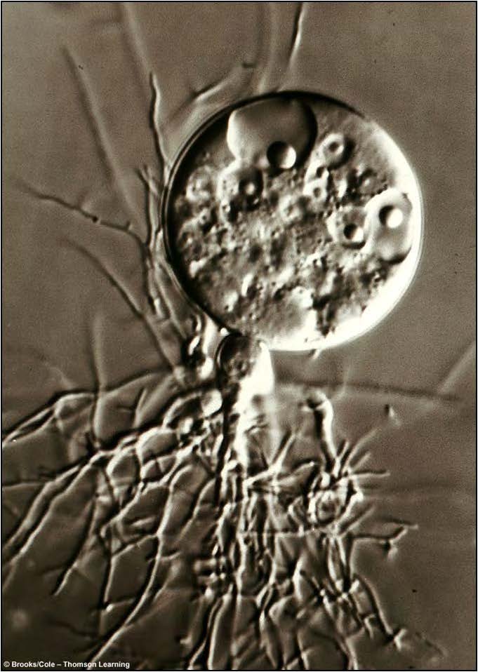 | Domain: Eukarya, Superclade: Unikonta, Clade: Opisthokont, Phylum: Zygomycota, shows fungal hyphae |