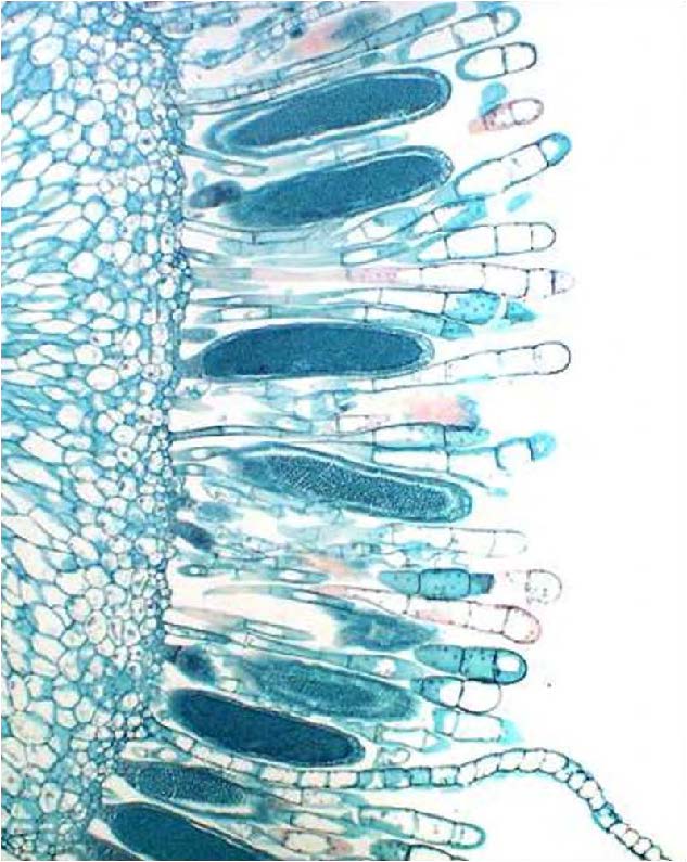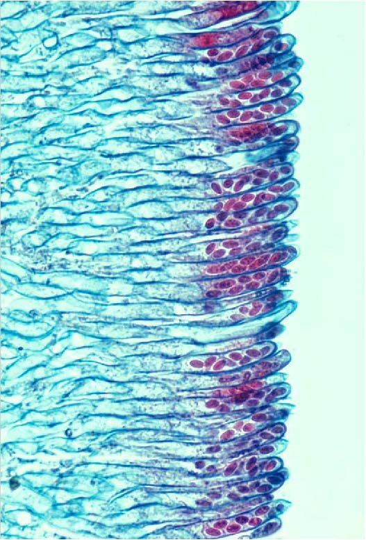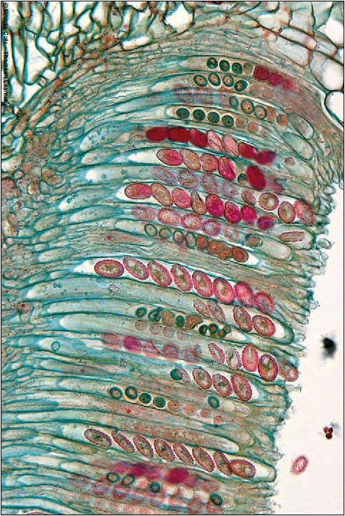 | Domain: Eukarya, Superclade: Unikonta, Clade: Opisthokont, Phylum: Ascomycota, sac/cup fungi, shows sexual ascus and ascospores |