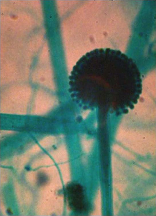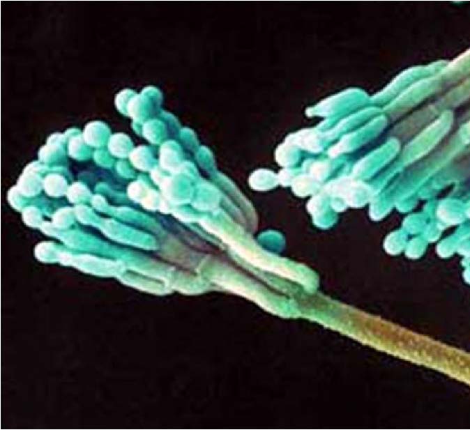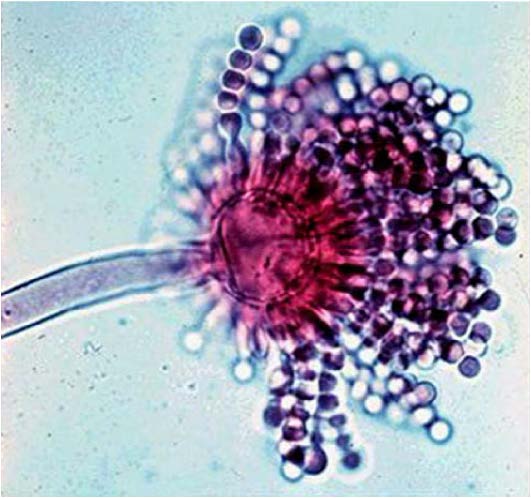 | Domain: Eukarya, Superclade: Unikonta, Clade: Opisthokont, Phylum: Ascomycota, sac/cup fungi, shows asexual conidiophores and conidia (spores) |