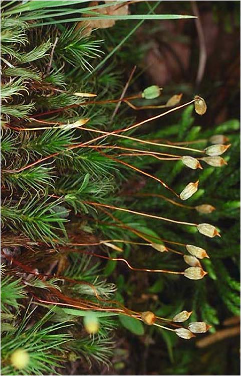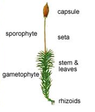| Domain: Eukarya, Kingdom: Plantae (superclade Archaeplastida), Derived homology: Bryophytes, Phylum: Bryophyta (mosses), Facts: Non-vascular, no true leaves, stems, or roots, must live near moist environment, gametophyte dominant, diploid part are tall, stalk-like sporophytes., .png) |