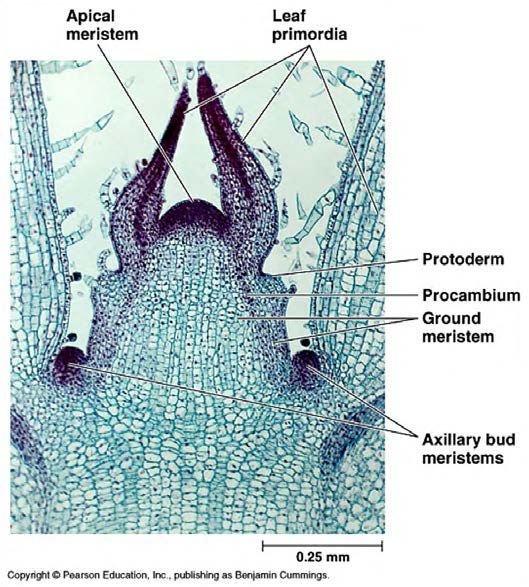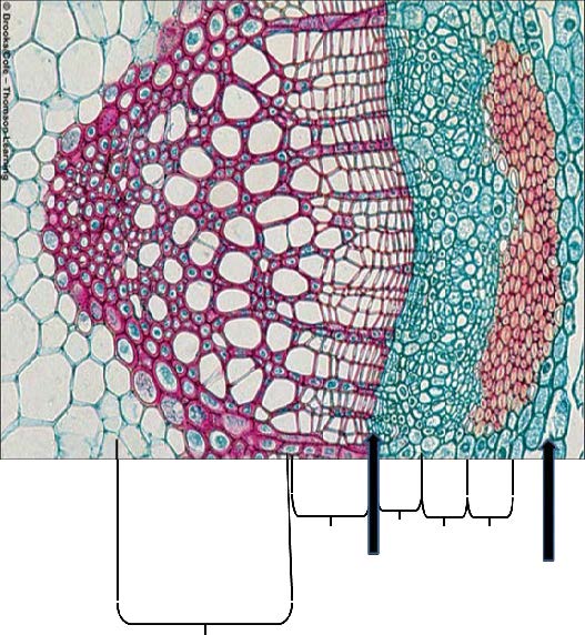 | from left to right: Primary xylem, Secondary xylem, Vascular cambium, Secondary phloem, Primary phloem, Phloem fiber cap, Cortex |