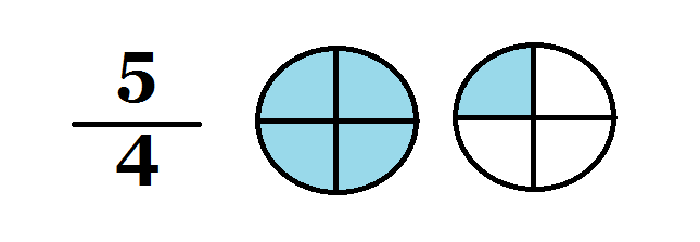 | improper fraction | numerator is larger than denominator,  |