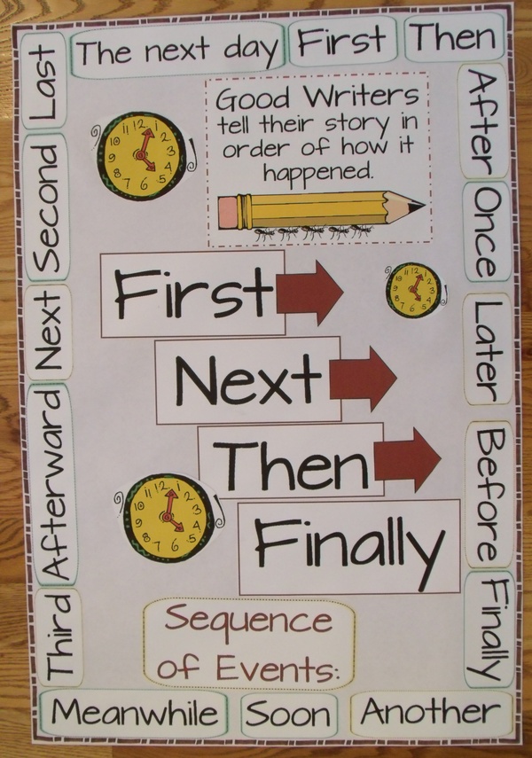chronological,  | arranged in the order that things happened or came to be (adj) |