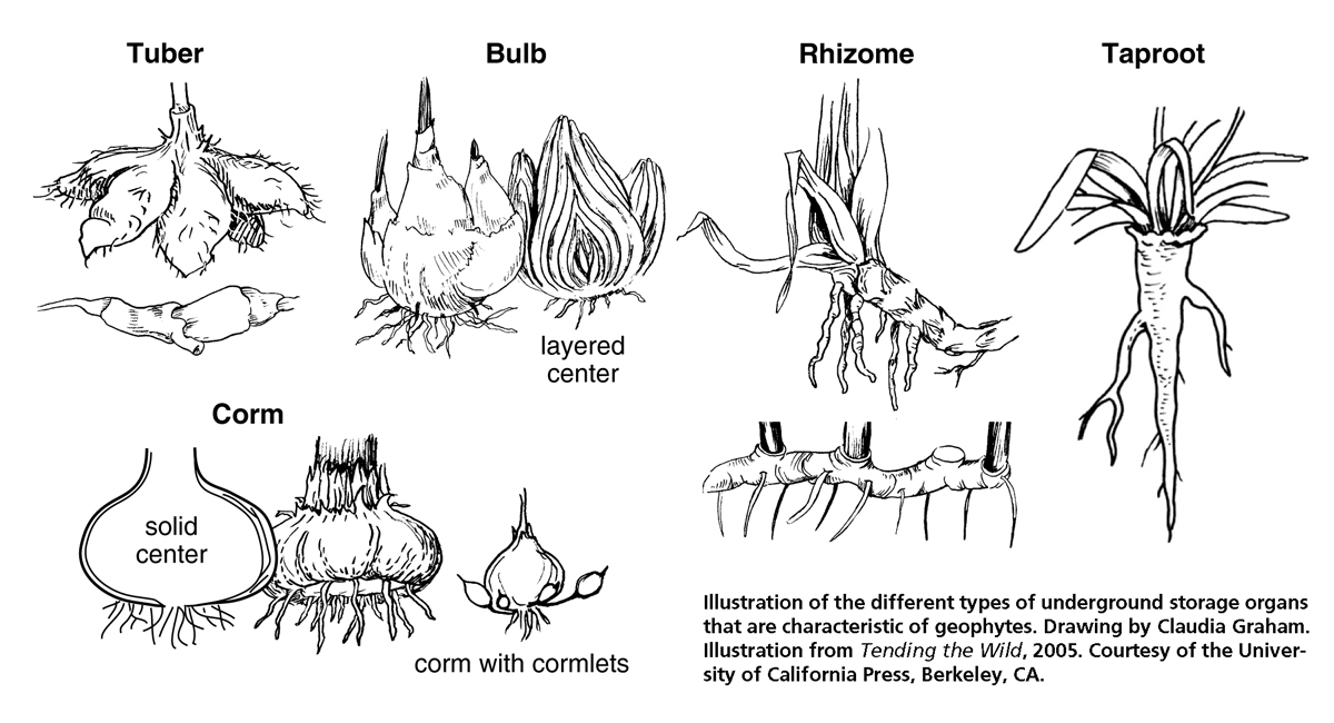 | geophyte | a plant that grows below the earth's surface, such as a bulb, tuber, or corm,  |