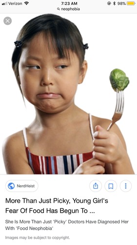 | neophobia | the fear of anything new,  |