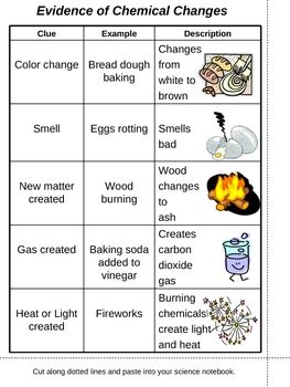 Example of chemical change | Hydrogen peroxide forming bubbles on its own is an example of matter breaking down into two substances. Vinegar and baking soda turning into bubbling foam is an example of two substances combining to create other substances |