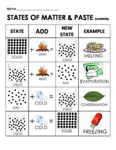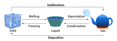 States of matter (physical change) | changing from solid, to liquid, to gas,  |