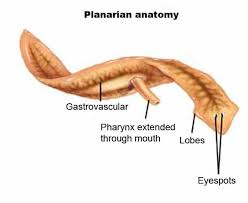 PHARYNX,  | A part of the digestive tract. It is used to suck up food in flatworms. |