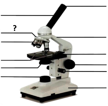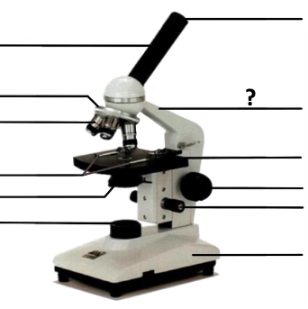 fine adjustment knob,  | moves the stage up and down slowly so you can bring the specimen into focus,  |