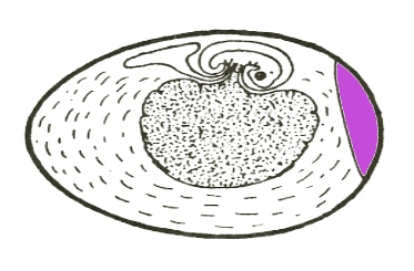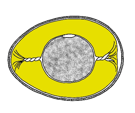 the white spot on the surface of every yolk; contains only the female cell,  | blastodisc |