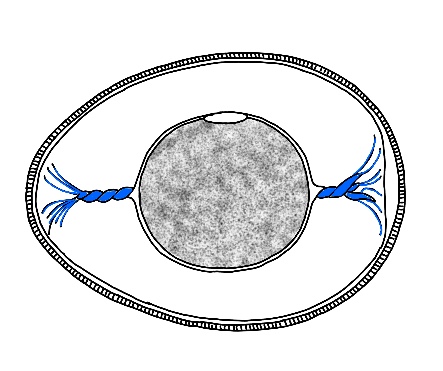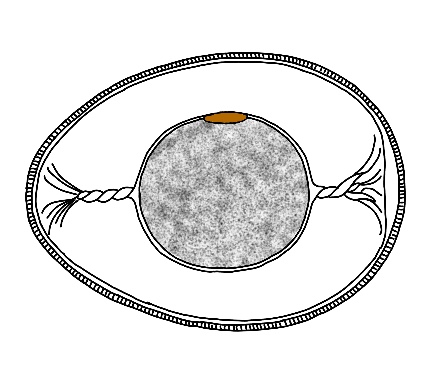 tightly wrapped membranes that keep the yolk centered in the egg,  | chalazae |