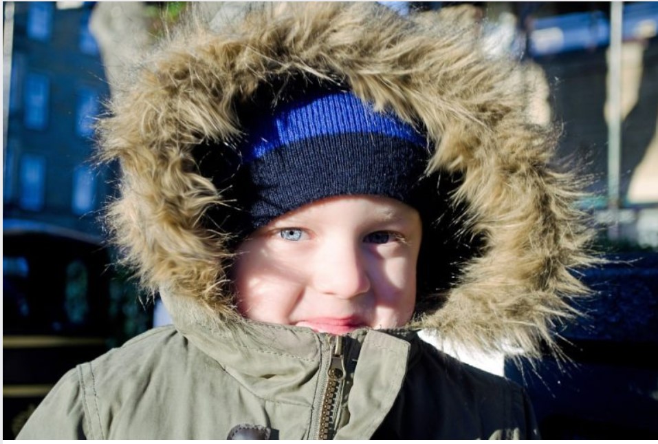 | Ils portent des manteaux d'hiver, des mitaines et des tuques. |