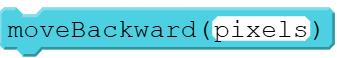 moveBackward(pixels),  | Moves the turtle backward a given number of pixels from the current direction. |