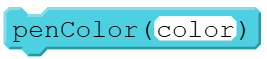 penColor(color),  | Sets the color of the pen used by the turtle for drawing lines and dots. |