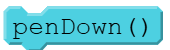 penDown(),  | Puts the pen down so the turtle draws a line behind it as it moves. |