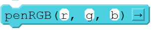 penRGB(r,g,b) or penRGBA r,g,b,a),  | Using RGB / RGBA values, sets the color of the pen used by the turtle for drawing lines and dots. |