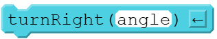 turnRight(angle),  | Rotates the turtle right by the specified angle. The turtle’s position remains the same |