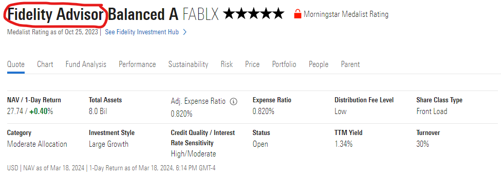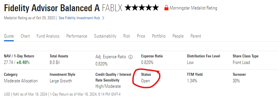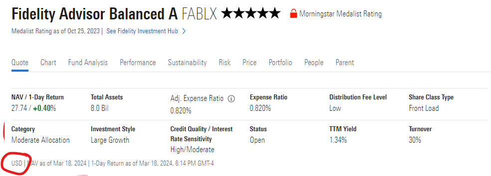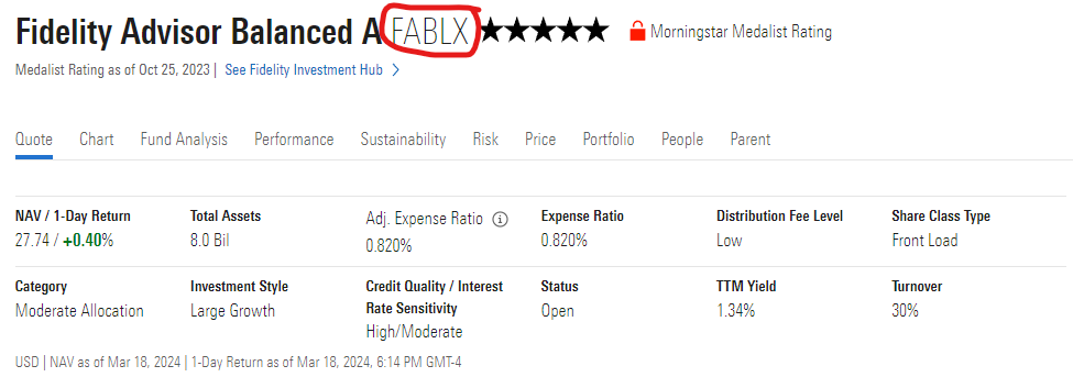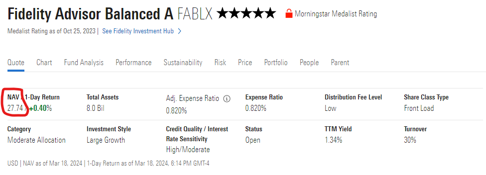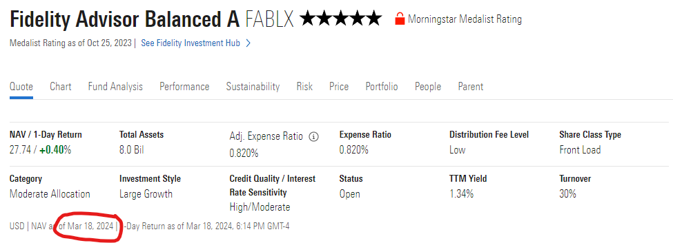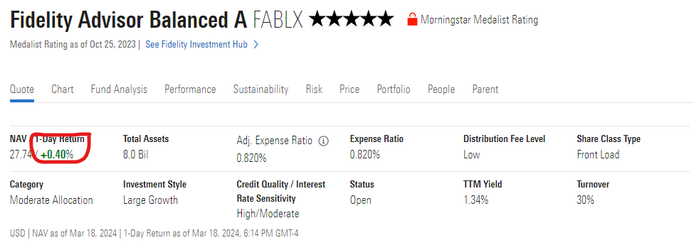 PF - Mutual Fund Quote Screen