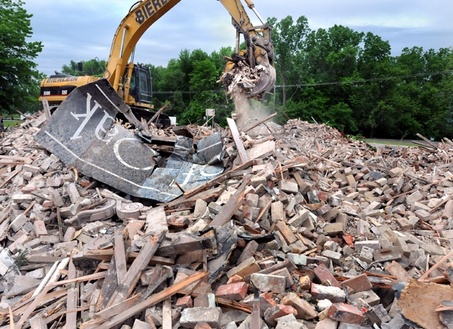 raze (v),  | destroy utterly by tearing down; demolish; level to the ground |
