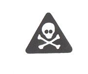 Poison,  | Indicates the presence of a poisonious substance. Do not let such a substance come in contact with your skin and do not breathe its vapors. |