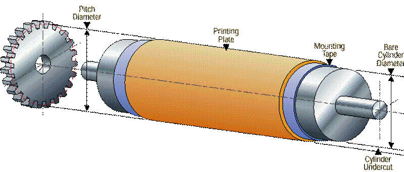 Bare cylinder diameter,  | The diameter of the actual plate cylinder before the stickyback and plates are mounted. |