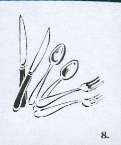 | des ustensiles: un couteau, une cuillère, une fourchette |