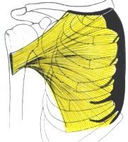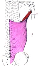 | The Spinous process of T7-T12, spinous process of the lumbar vertebra, sacrum to the posterior iliac crest as well as to ribs 7-10 and to the inferior angle of the scapula is the origin for: | Latissimus Dorsi |