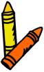 | There is a yellow crayon behind the orange crayon. |