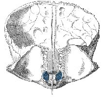 | left parietal lambdoidal / occipital angle (lateral ectocranial) |