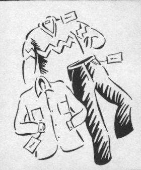 | des vêtements (un chandail, une chemise, un pantalon) |  |