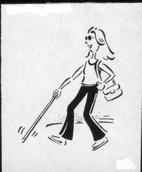 | une personne aveugle ou une personne malvoyante utilise une canne pour marcher; elle peut aussi avoir un chien guide |  |