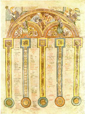 | Canon Tables: listed the passages that were parallel in the four Gospels, according to the system of Eusebius of Caesaerea. |