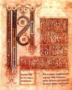 | Lindisfarne Gospels: written ca. 700, named for the monastery in which it was written. |