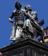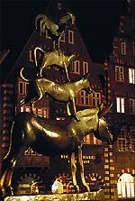 The Brothers Grimm monument in Hanau. Travelers can begin their exploration of the Fairy Tale Road at any point, of course, but the official starting point is Hanau, the birthplace of the Brothers Grimm. The city, less than an hour’s drive from the transportation hub of Frankfurt, hosts the Fairy Tale Festival (Maerchenfestspiele) each summer on the grounds of the baroque Philippsruhe Castle, a summer residence built by Count Philipp Reinhard in 1701. In years past, the festival has drawn upwards of 70,000 visitors. Performances are held almost daily and have previously included "Sleeping Beauty" (Dornröschen) and ballet productions of "Snow White" (Schneewittchen) and "A Midsummer Nights Dream." Just outside the city lies Wilhelmsbad, a spa and amusement park built around a natural spring in the late 1700s. The spring dried up a century ago, but Wilhelmsbad is still a popular destination for its beautiful grounds, the Hessen Doll Museum and cultural events. STEINAU AN DER STRASSE The Grimm's family home, now a museum Here you can visit the picturesque Grimm family home and museum, the last remaining building that was once home to the Brothers Grimm. The Grimm family lived in Steinau from 1791 to 1796. The medieval town — with its motto "Fairy tales become reality" — is also home to the renowned marionette theater, Die Holzkoeppe (the Wooden Heads), housed in the former stables of the town castle. Younger children will love the town's adventure park (Erlebnispark) with its petting zoo, mini-train, and other rides and amusements. Admission prices are based on height - visitors under 90 cm (that's 2 feet 11 inches) get in free! MARBURG The Brothers Grimm both studied law in Marburg and began collecting regional folktales here. This university city on the banks of the Lahn River is worth a visit for its castle, with its 15th-century Wilhelmsbau (Knights Hall) addition. The Wilhelmsbau was the site of the Marburg Religious Discussions of 1529 between Martin Luther and Swiss reformer Zwingli. The castle houses the Museum for Cultural History. Another highlight of Marburg is the Elisabethkirche, the oldest gothic church in Germany, built from 1235 to 1283. KASSEL The Brothers Grimm worked as librarians here from 1808 to 1830. It is from here that they first published their collection of fairy tales, Kinder und Hausmaerchen (Children and Household Tales). Appropriately, Kassel boasts the Brothers Grimm Museum, including an archive and research center, in the Palais Bellevue. Among the museum's artifacts is a handwritten manuscript of Kinder und Hausmaerchen. Visitors may also be surprised to find an exhibit dedicated to the "third" Grimm brother, Ludwig Emil, a painter and illustrator. Kassel has much to offer aside from fairy tales. Be sure to plan time in your visit to Kassel for an excursion to Wilhelmshoehe Park with its Hercules monument, the city's trademark, and cascading water displays (Wasserspiele) dating from the 1700s. You can let a visit to the Museum for Sepulchral Culture (Museum für Sepulkralkultur) bring you back down to earth. It features exhibits on all things related to death, burial and commemoration. Every five years, Kassel becomes the focal point of the contemporary art world as the host of the Documenta exhibition. SABABURG Who could resist stopping in this little town that boasts Sleeping Beauty's Castle, (Das Dornroeschenschloss)? The picturesque castle dates from 1490. It was restored beginning in 1959 after a century in ruin. You can have a fairy-tale wedding in the castle, or just let yourself be pampered in the hotel and restaurant. A theater in the cellar and the beautiful gardens are added attractions. Sababurg is also home to an animal park, Tierpark Sababurg, with over 80 animal species, including bison, wolves, lynx, and wild deer. BREMEN The donkey, dog, cat and rooster that make up the Bremen Town Musicians At the northern end of the Maerchenstrasse, Bremen bills itself as the home of the Grimm's fairy tale characters, the Town Musicians. Hometown sculptor Gerhard Marcks' bronze statue of the four characters has become something of a Bremen icon. Every Sunday from May through September, you can enjoy free open-air performances by the Town Musicians themselves (actually actors with the Waldau Theater) in front of city hall. A stroll through the narrow twisting streets of Bremen's Schnoorviertel, with its tiny half-timbered houses, will take you back to the 15th and 16th centuries. If you're planning a trip for the fall, don't miss the Bremen Freimarkt, at 965-years-old, it's one of Germany's oldest folk festivals. A short distance from Bremen is the town of Verden, home of the German Horse Museum and, for the kids, Magic Park Verden, a wooded amusement park with more than 70 attractions. For a brochure, please contact the German National Tourist Office. See the link below. If would like to receive "The Week in Germany" directly, send a blank email to subscribe-gic-e@lyris.globescope.com