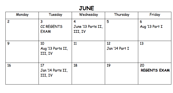 IMPORTANT INFORMATION THE REGENTS IS FINALLY HERE- FRIDAY JUNE 20th 8:00-11:00 Please bring 2 pencils, 2 pens, a highlighter and your graphing calculator.
