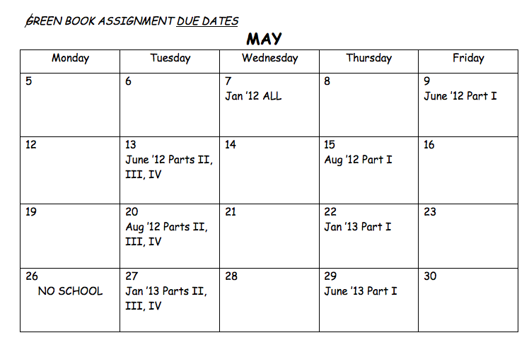 You have green book work to do!! Stay on top of it by looking at the calendar frequently!!!