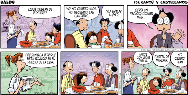 CW: Working with a partner you have to find a comic strip in a restaurant setting and translate it. Post it in the google presentation without the translation but the glossary with the vocabulary words that a reader needs to understand your comic strip( Your slide has to have your names , original comic strips and the translation). Make sure that your comic is not repeated from the previous ones of your classmates. Your goole Presentation link is as follows: