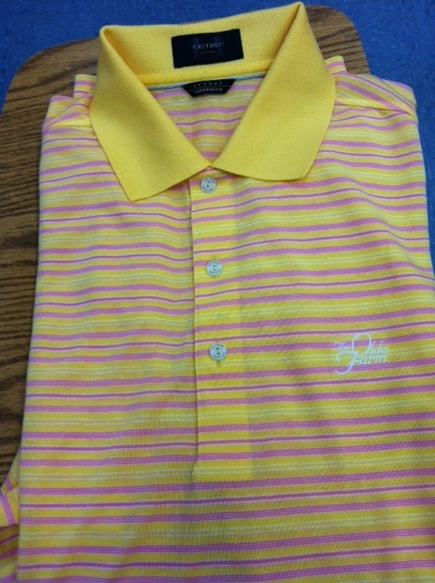 Men’s Eritage Size Large Yellow with White and Pink Horizontal Stripes Olde Farm Polo ($75 value)