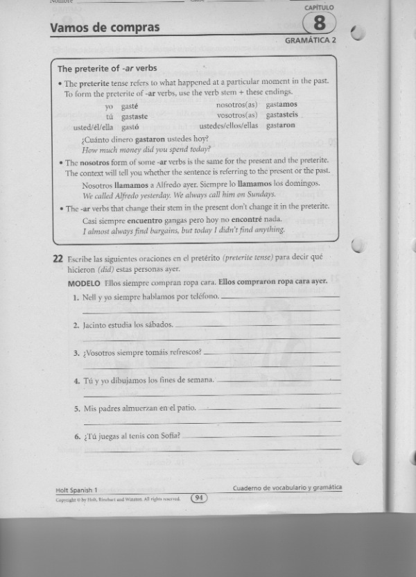 Reinf. Chapt.6 - direct object pronouns A Reinf. Chapt. 6 - direct object pronouns B Reinf. Chapter 6 - stem changing verbs Reinf. Chapter 6- voc. A Reinf. Chapter 6 - Voc. B