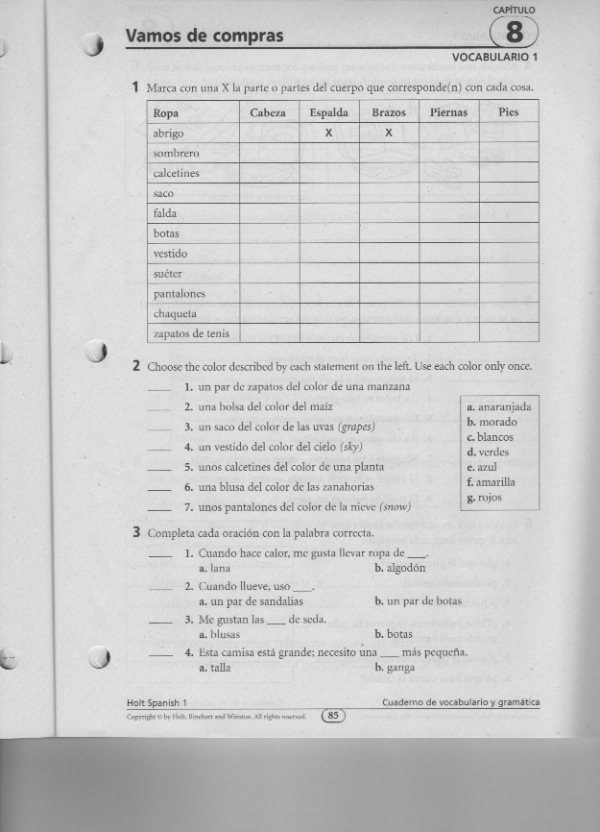 If you are absent Monday 14th, Tuesday 15th or Wednesday 17th, please check the agenda and make sure you do the pages from Cuaderno de Vocabulario. All pages have been loaded here, pay attention to the following legenda: