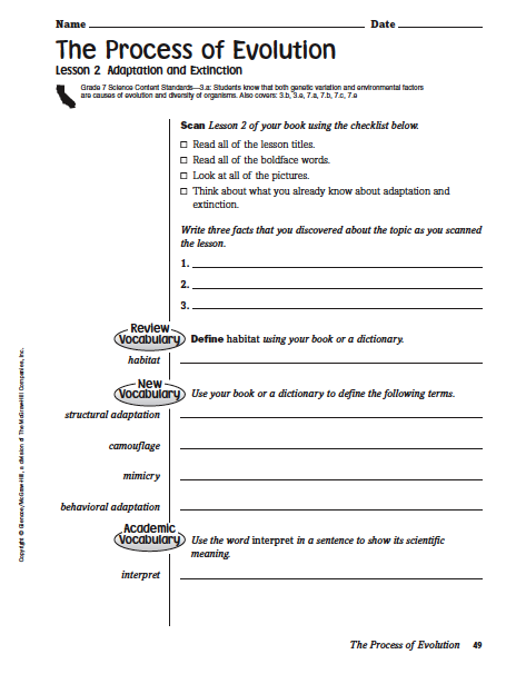 Today we will be focusing on pages 223-226 in our textbook. These pages cover Behavorial Adaptations, and the major causes of Extinction. We will complete page 51 in our Science Notebook. If you are absent and do not have your Science Notebook at home you can download that page below.
