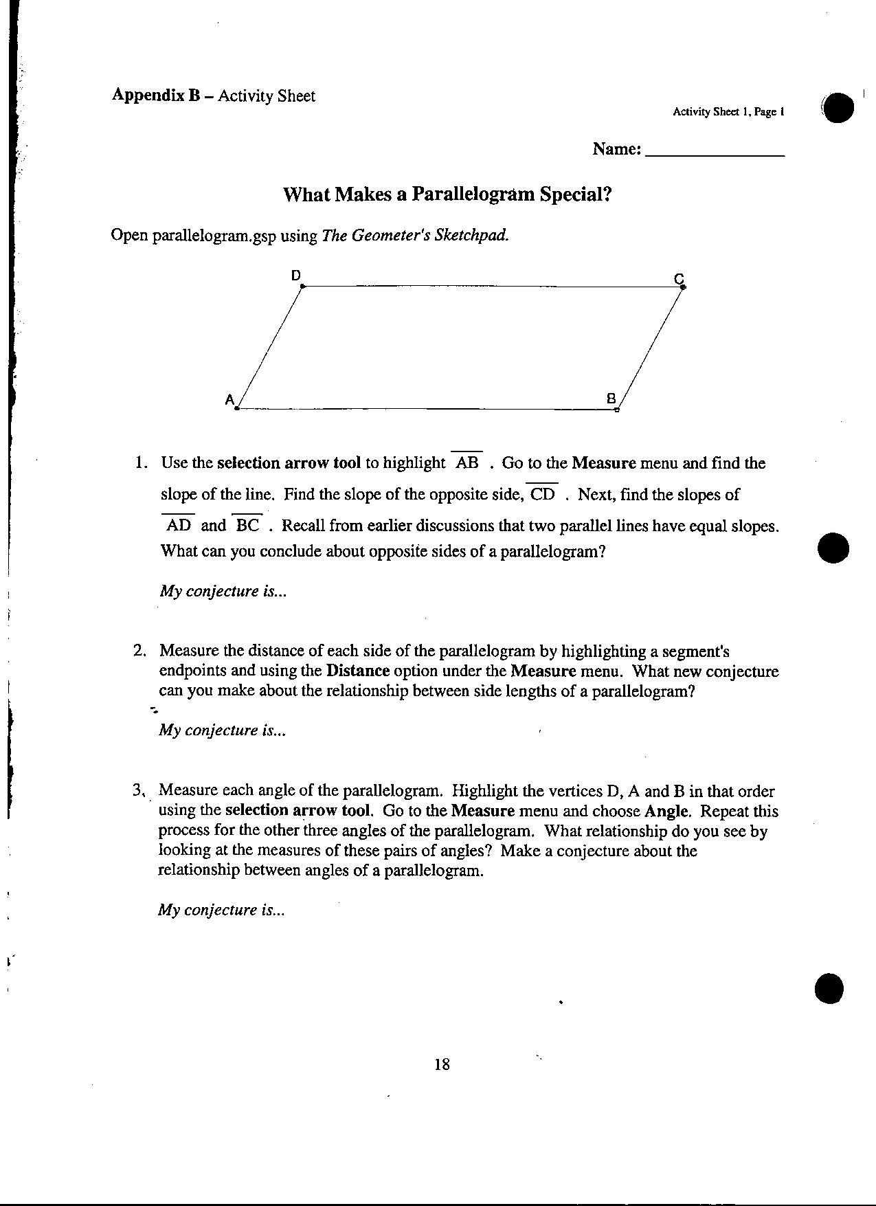 In-class - Check homework from yesterday; Answer testing for parallelograms questions; Rectangle GSP activity (in-class); Rectangle activity template (GSP); Rectangle activity directions - put your answers on the directions sheet or on a separate sheet of paper in your notes.