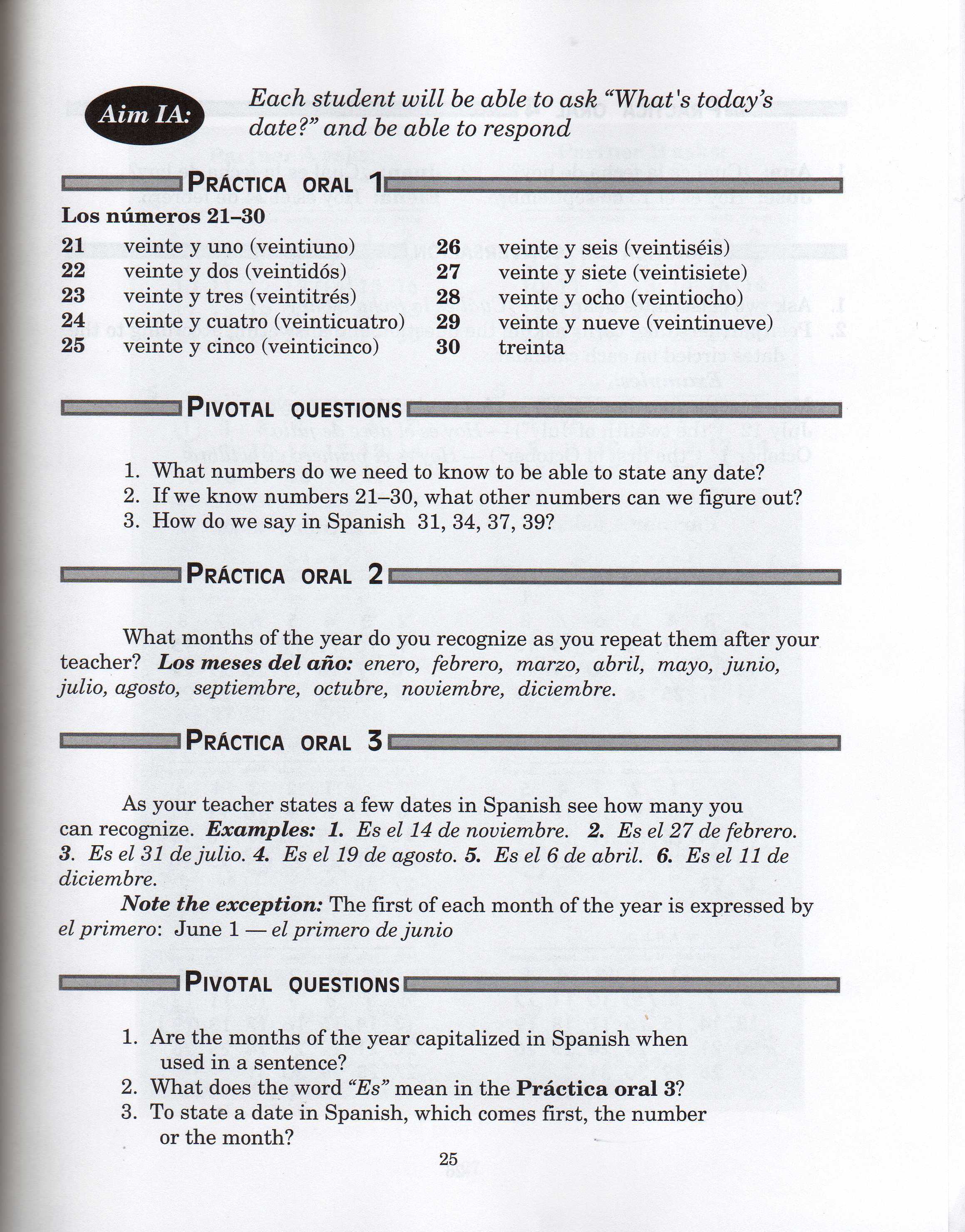 b.) Grammar: -Using the verbs 'Ser', 'Tener', 'Empezar', 'Terminar' and 'Venir' with time expressions; - Applying interrogatives idiomatically to generate meaningful questions